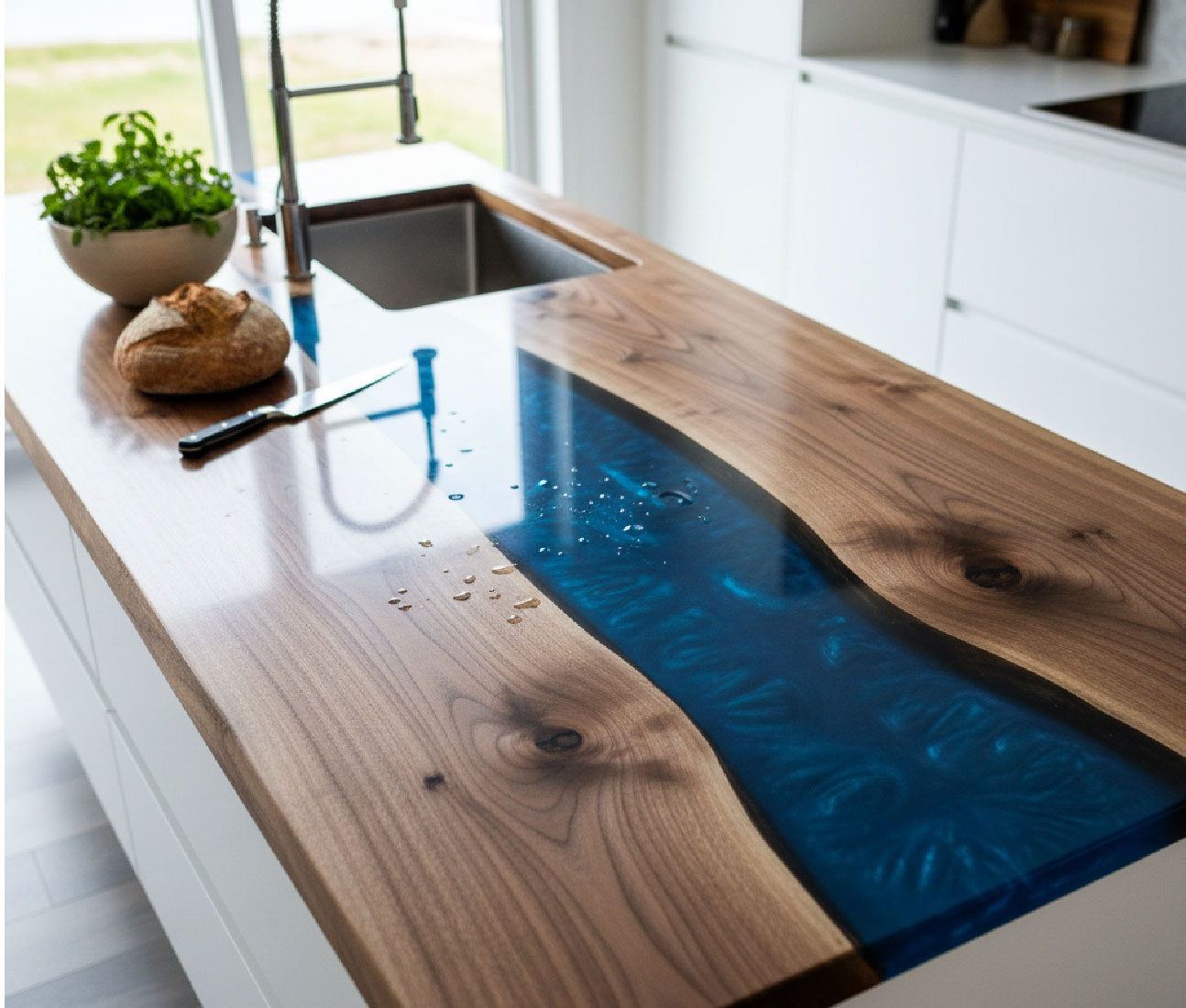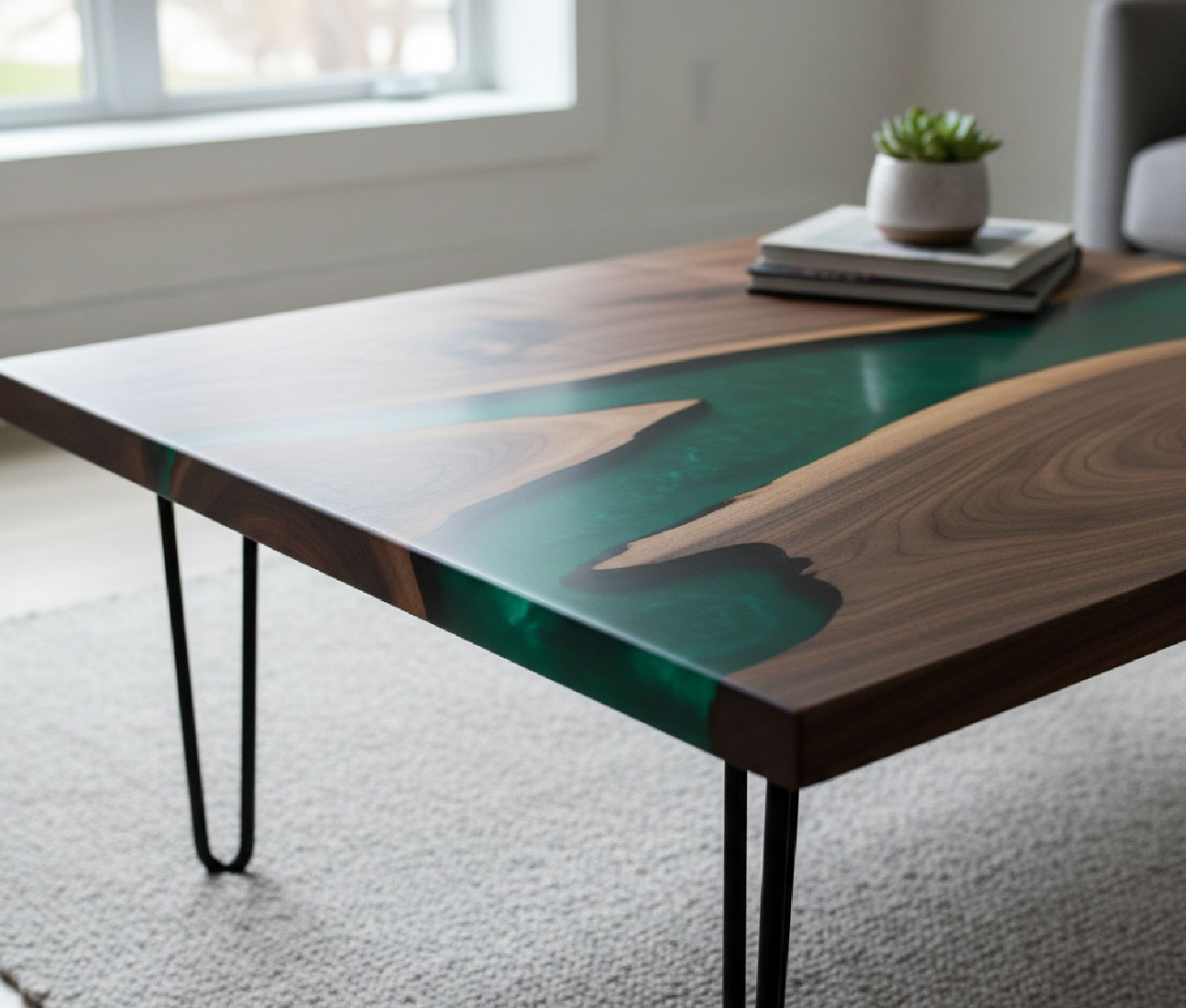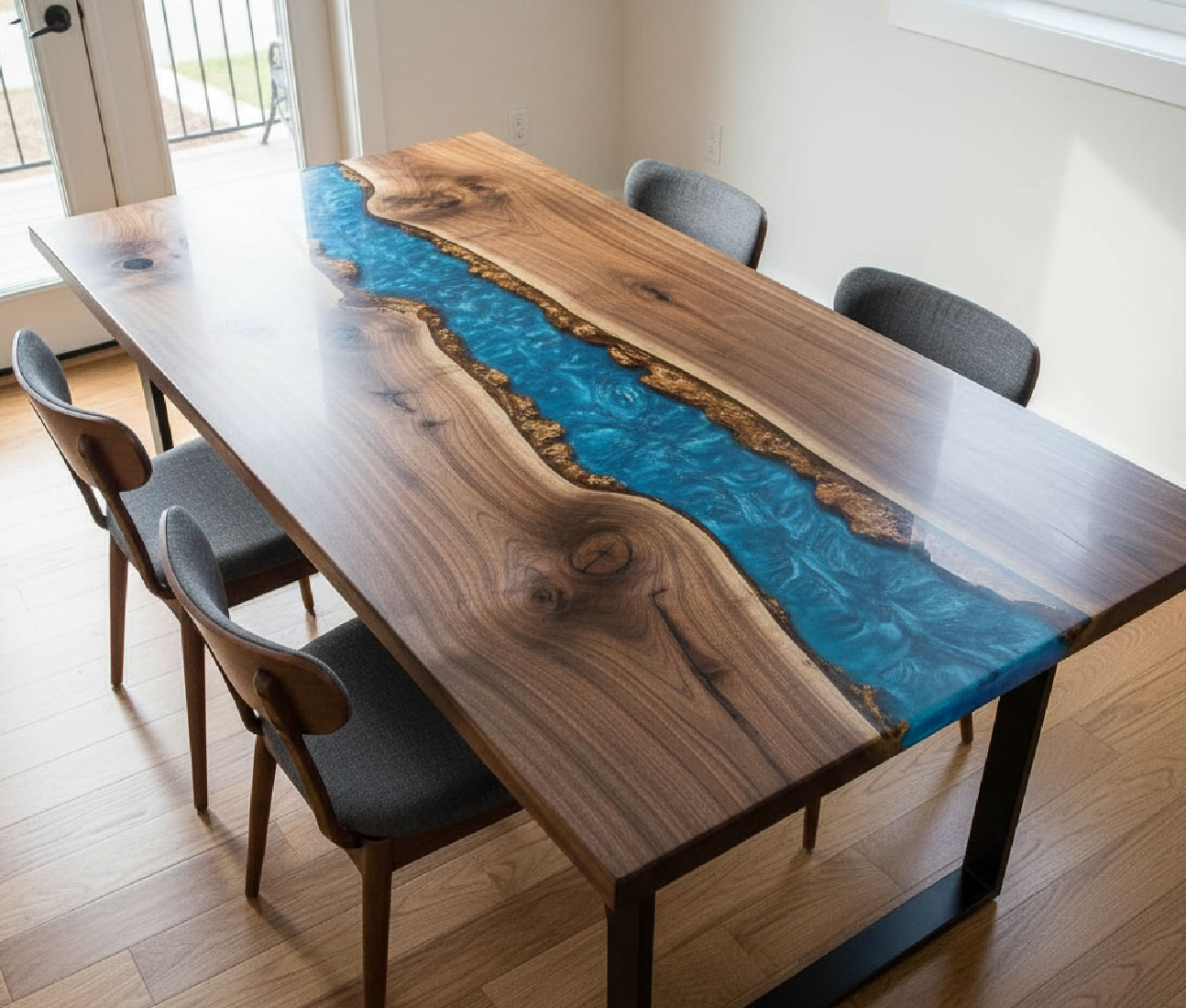 Unimos la nobleza de la madera sólida con resina epóxica y estructuras metálicas a medida.
